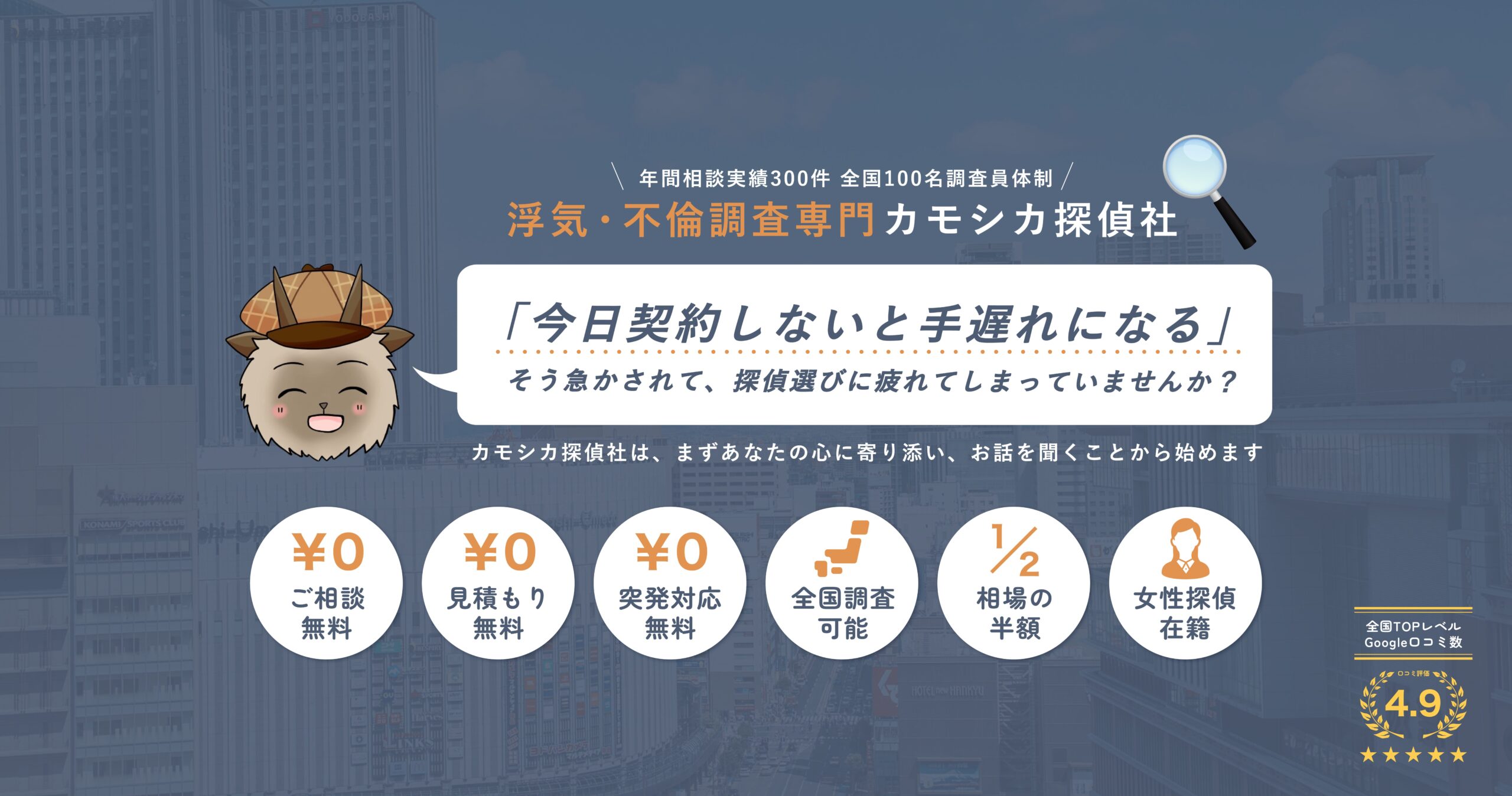 SNSや口コミで実績を積み上げてきたカモシカ探偵社は広告費を削減することで低料金&明瞭会計な独自のプランをご用意しております。