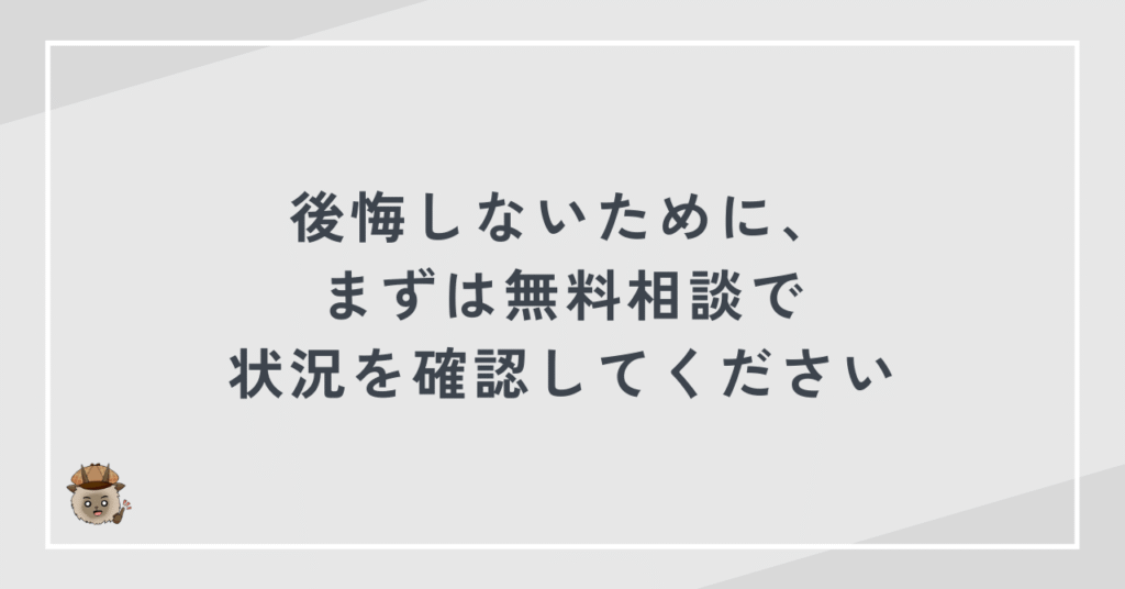 「もう無理かもしれない」と感じている場合ほど、一度正確に状況を確認することが、後悔しないための最善の選択になります。