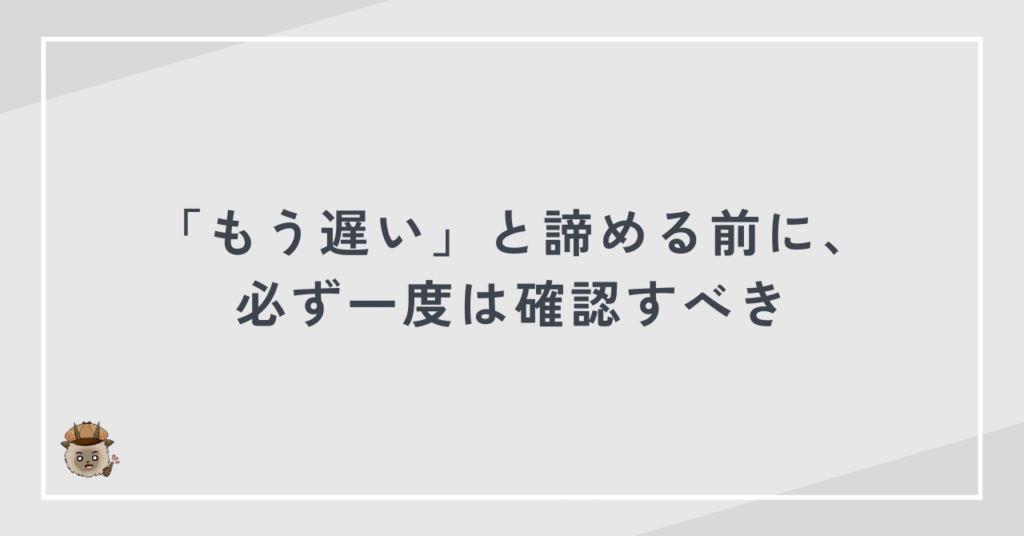 「もう遅い」と諦める前に、必ず一度は確認すべき