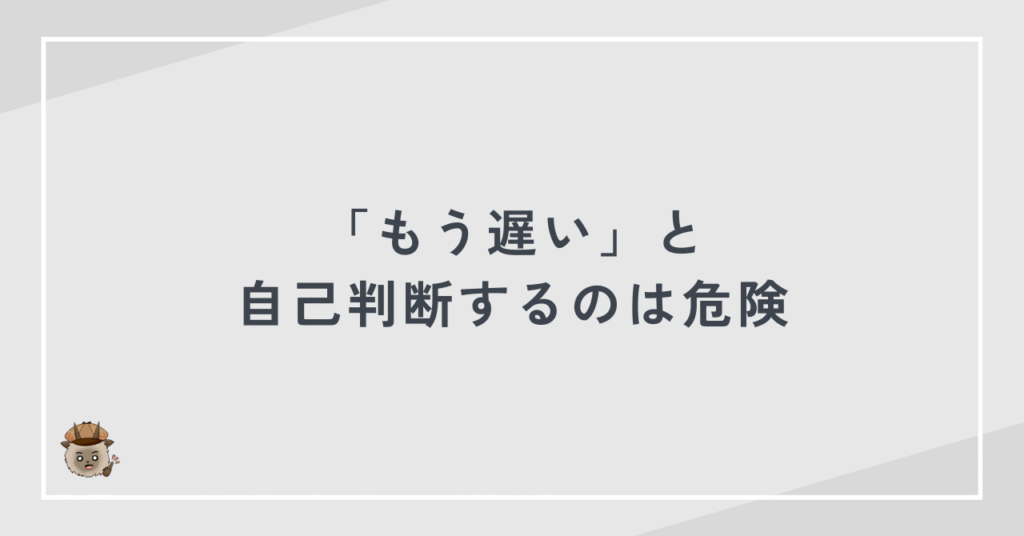 「もう遅いかもしれない」と感じている場合でも、実際にはまだ十分に間に合うケースは少なくありません