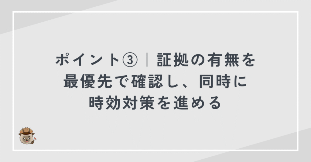 ポイント③|証拠の有無を最優先で確認し、同時に時効対策を進める