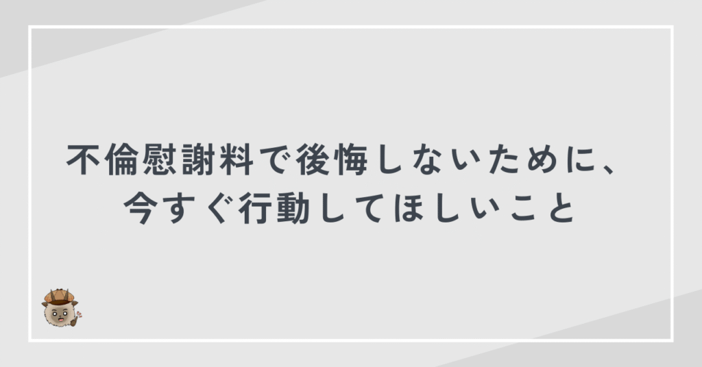 不倫慰謝料で後悔しないために、今すぐ行動してほしいこと