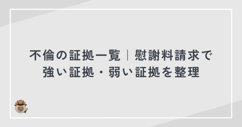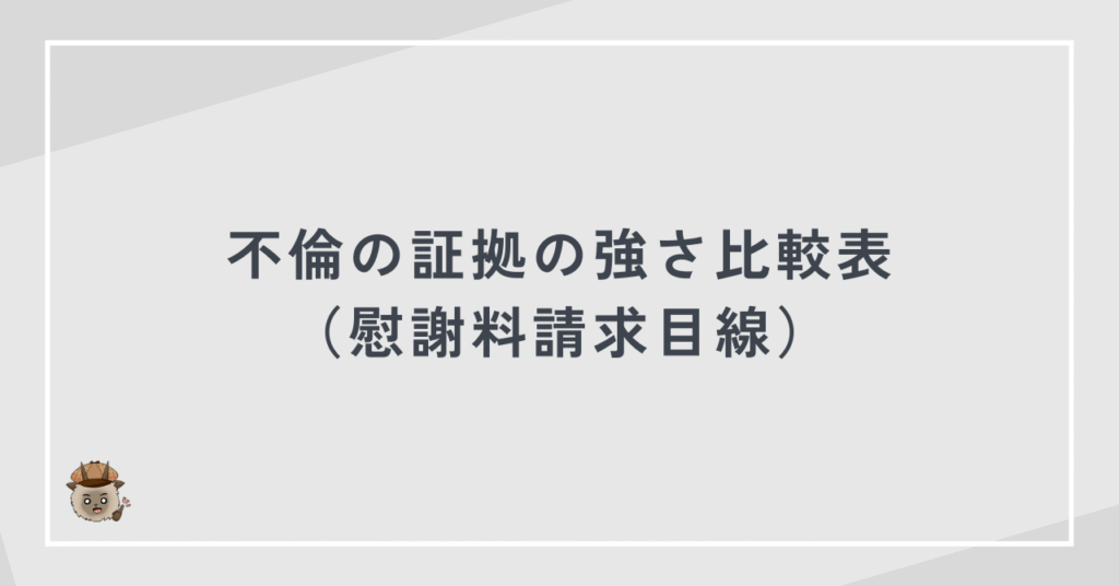 このH2では、慰謝料請求で評価されやすい順に「強い証拠」「補強証拠」「弱い証拠」「危険な証拠」を整理します。