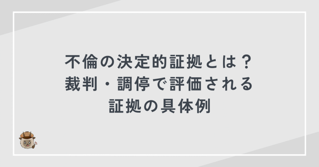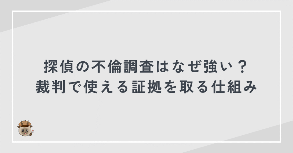 この前提を理解しないまま証拠集めを始めると、時間もお金も無駄になります。