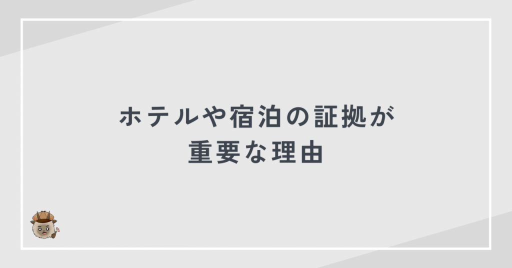 • 旅行や宿泊の証拠(同室宿泊が分かる予約情報、チェックイン記録、出入り撮影)