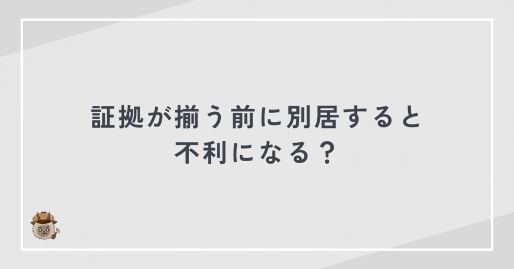 そのため、証拠が揃う前に別居すると、相手が破綻を主張しやすくなります。