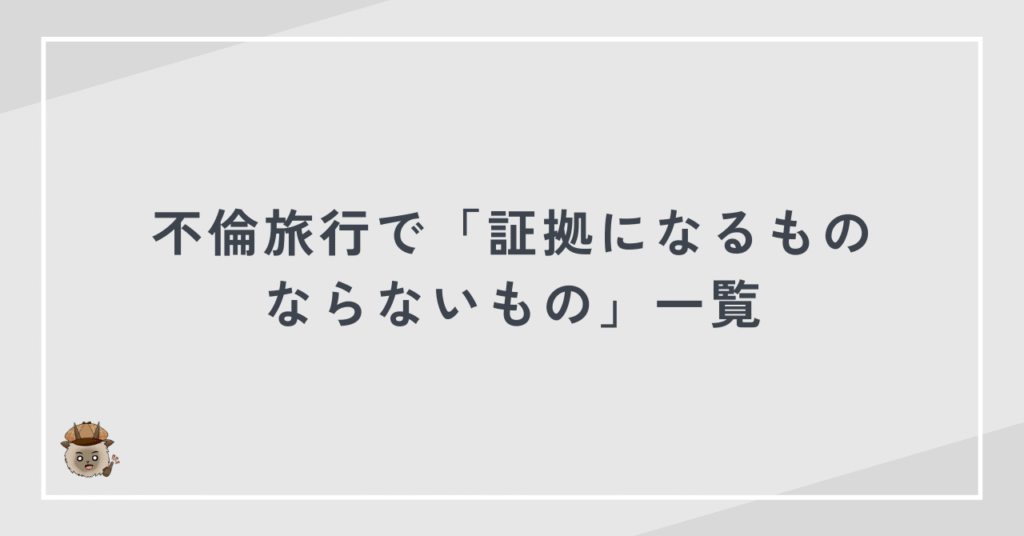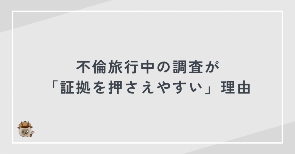 不倫旅行は、行動時間が長く、宿泊や移動の記録が残りやすいため、証拠を押さえやすい状況でもあります。だからこそ、自己判断で動くのではなく、合法性と証拠力を意識した対応が求められます。