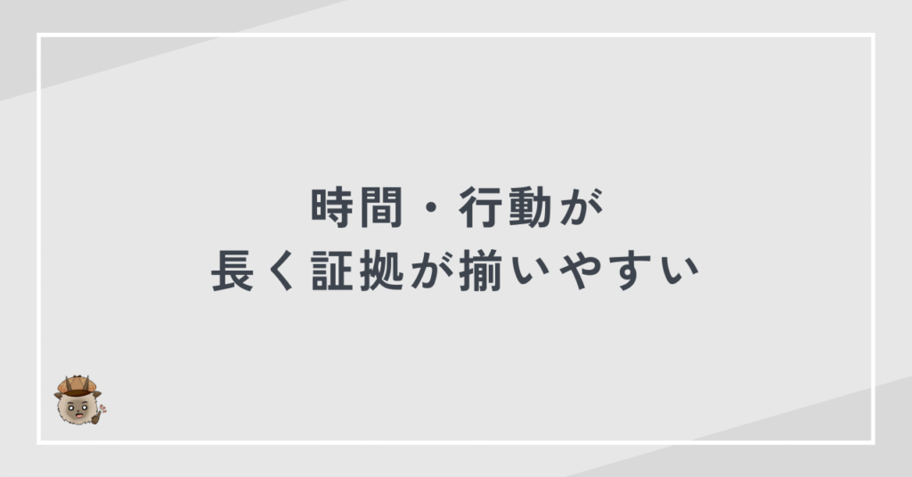 結果として、決定的な証拠を押さえる前に状況が変わり、慰謝料請求が難しくなるケースが少なくありません。