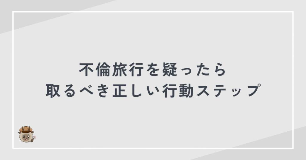 不倫旅行を疑った段階での行動は、慰謝料請求や今後の選択肢に大きな影響を与えます。感情ではなく、順序を意識した行動が重要です。ここでは、実務上推奨される行動ステップを整理します。