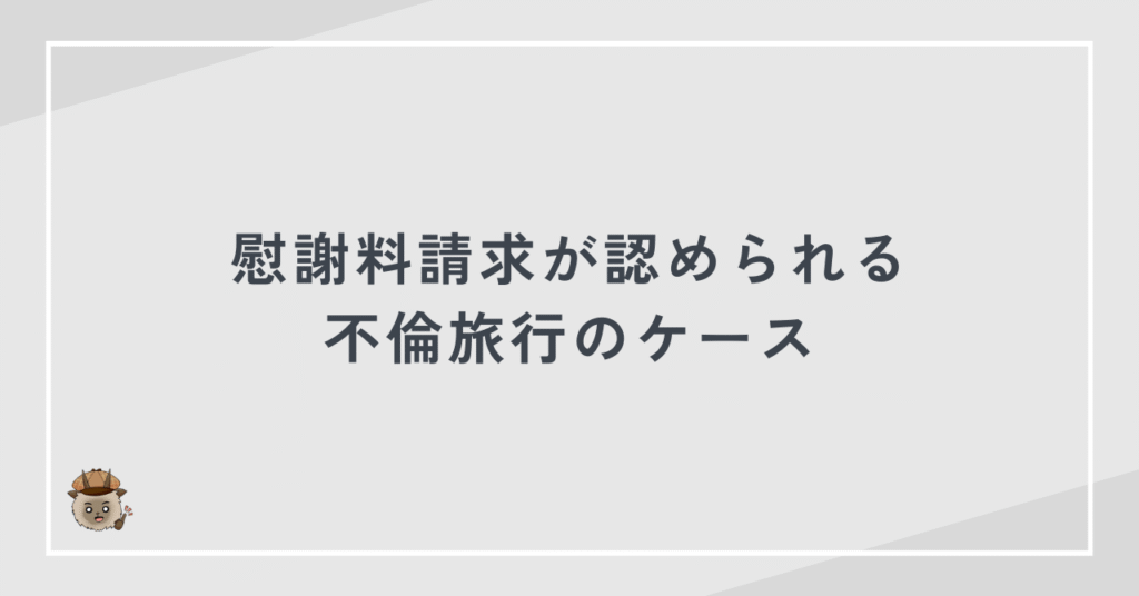 慰謝料請求が認められるケースでは、同室宿泊やラブホテル利用、複数回の不倫旅行などが確認できることが多く、証拠の積み重ねが重要になります。一方で、日帰り旅行や別室宿泊、証拠が曖昧な場合は、請求が否定されるリスクも高くなります。