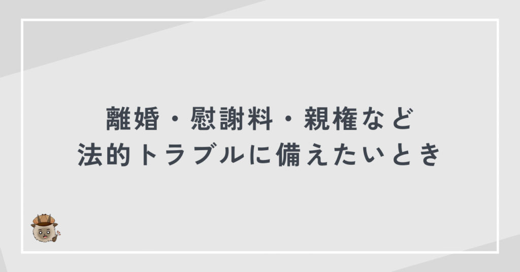 離婚・慰謝料・親権など法的トラブルに備えたいとき