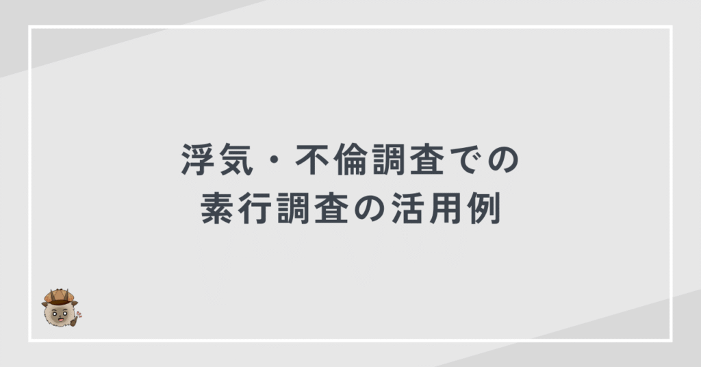 ここでは、実際に依頼が多い代表的なケースごとに、素行調査の活用例と調査内容を具体的に解説します。