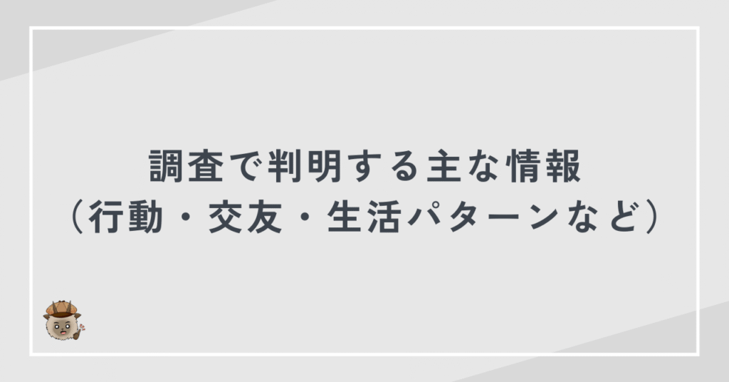 素行調査では、対象者の日常行動を中心に幅広い項目を確認します。主な調査内容は次のとおりです。