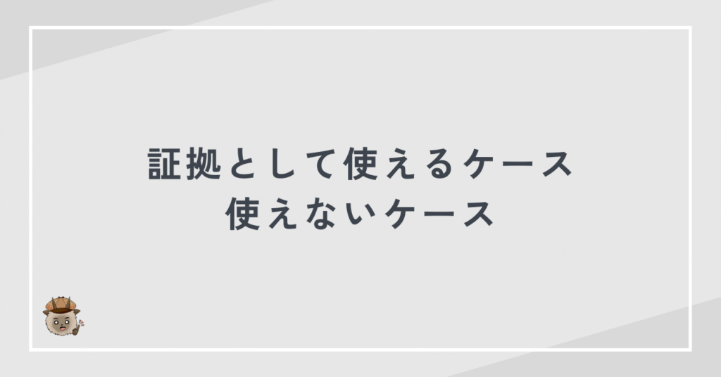 行動を記録するだけでは意味がありません。離婚・慰謝料請求・社内処分・交渉の場で「使える証拠」を残せるかどうかが最も重要です。