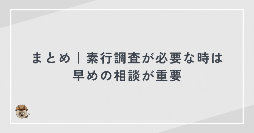 素行調査で最も重要なのは、「疑いが強くなってから動く」のではなく、違和感を覚えた段階で早めに相談することです。
