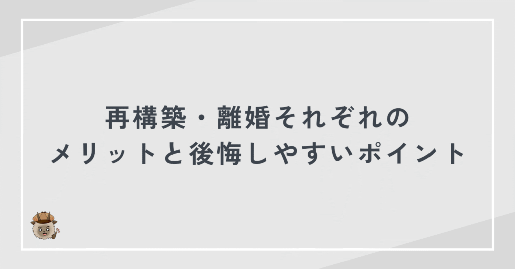 再構築でも離婚でも、必ず後悔しない選択はできます。