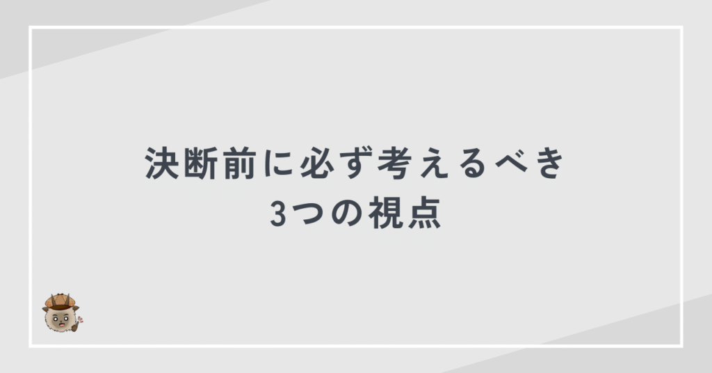 一人で判断すると、ほぼ確実にどこかで失敗します。
