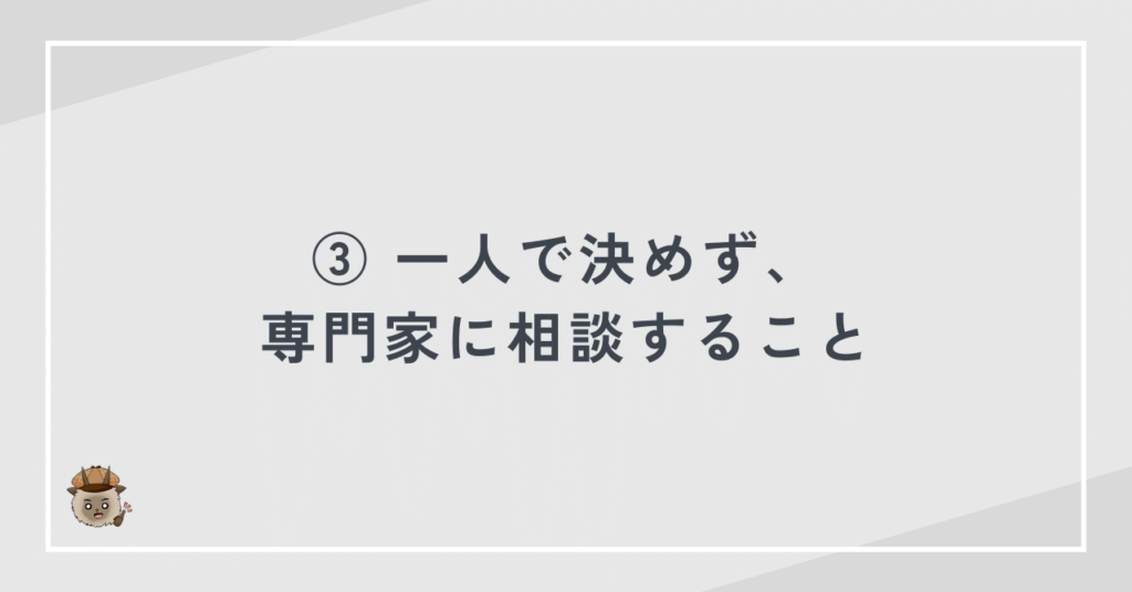 子どもがいる場合ほど、専門家に相談して冷静に判断することが重要です。
