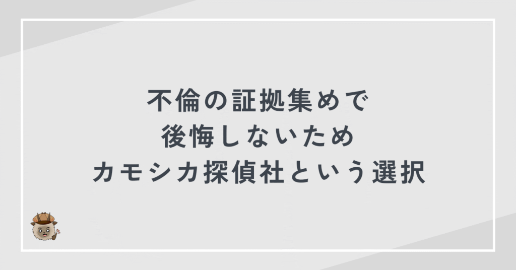 不倫の証拠集めで後悔しないために|カモシカ探偵社という選択