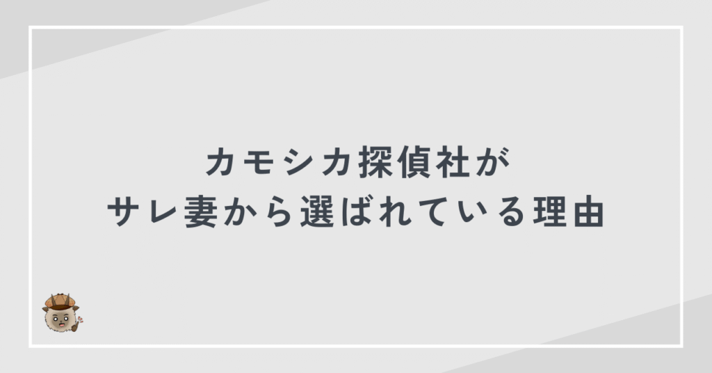 不倫・浮気調査に特化し、サレ妻の相談実績が豊富な「カモシカ探偵社」です。