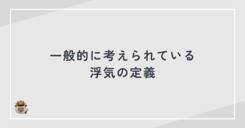 一般的に浮気とは、「恋人や配偶者以外の異性と、恋愛感情を伴う親密な関係を持つ行為」を指します。