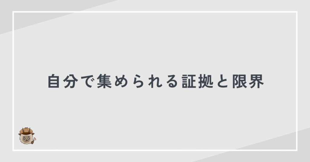 証拠がないまま弁護士に相談しても、「まず証拠を集める必要がある」と説明されるケースがほとんどです。