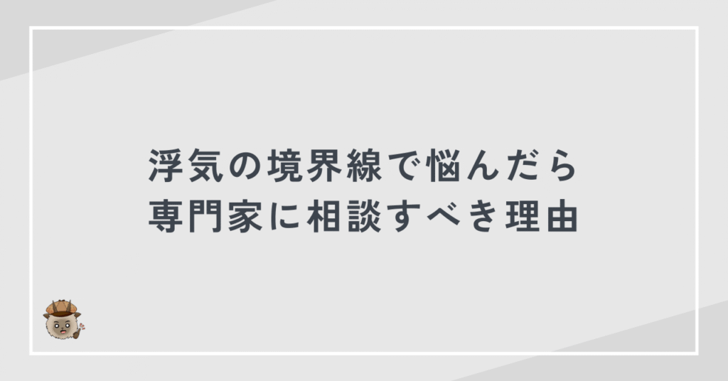 浮気の境界線で悩んだら専門家に相談すべき理由