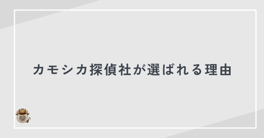 カモシカ探偵社は、「探偵をもっと身近に」をコンセプトに、浮気・不倫調査に特化した全国対応の探偵社です。