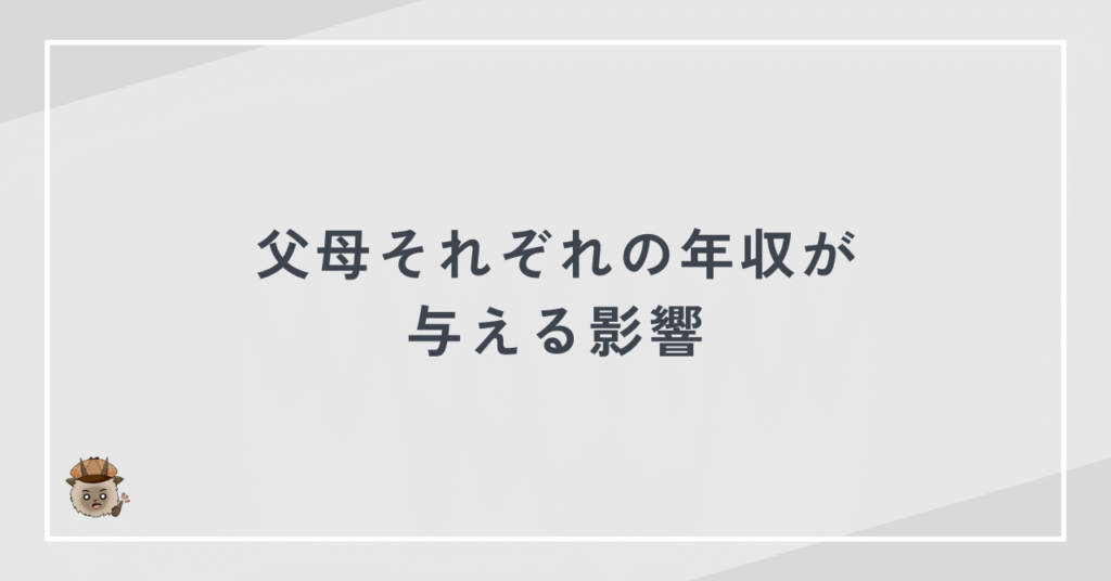 たとえば、同じ年収500万円の父親でも、母親が無収入の場合と年収300万円の場合では、相場に大きな差が生じます。