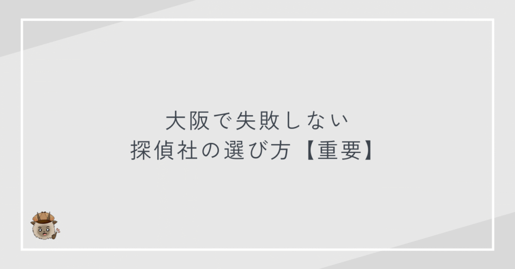 大阪で失敗しない探偵社の選び方【重要】