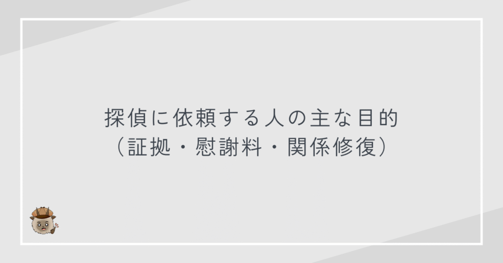 探偵に依頼する人の主な目的(証拠・慰謝料・関係修復)