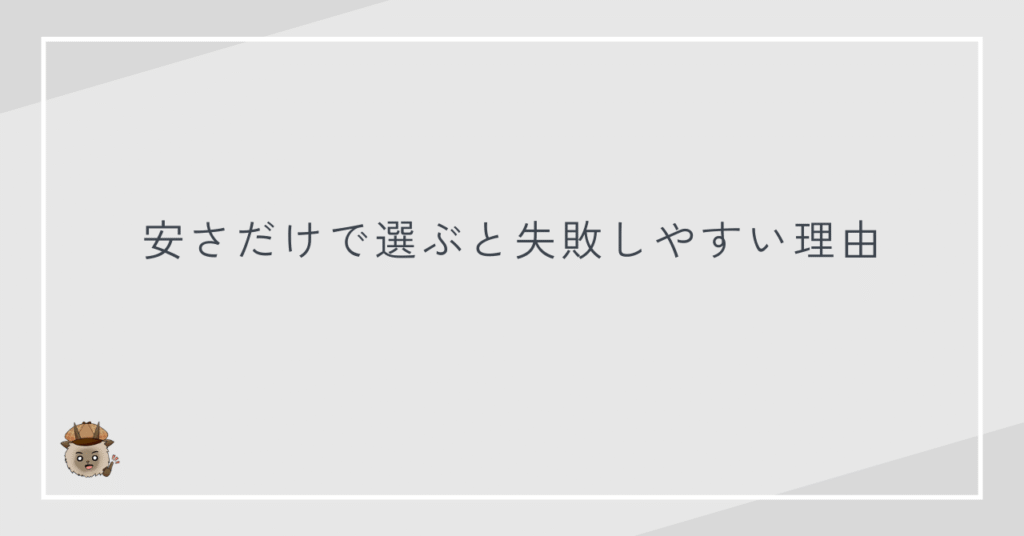 安さだけで選ぶと失敗しやすい理由