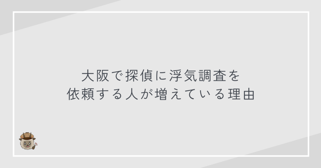 大阪で探偵に浮気調査を依頼する人は年々増加しています。理由は単純な流行ではなく、環境的・社会的な背景が明確に存在します。