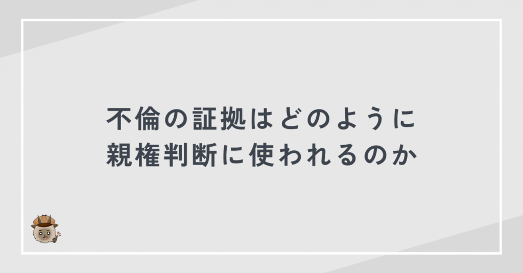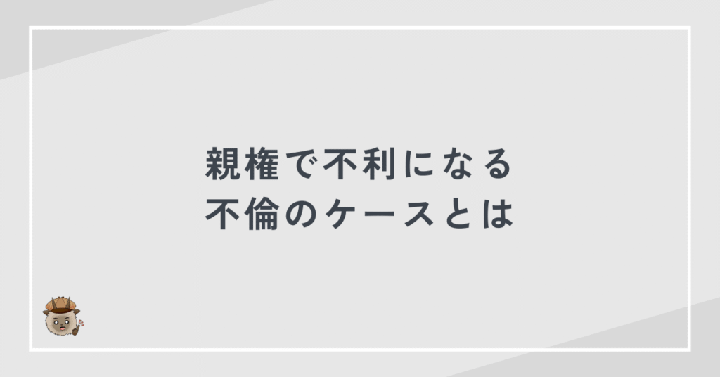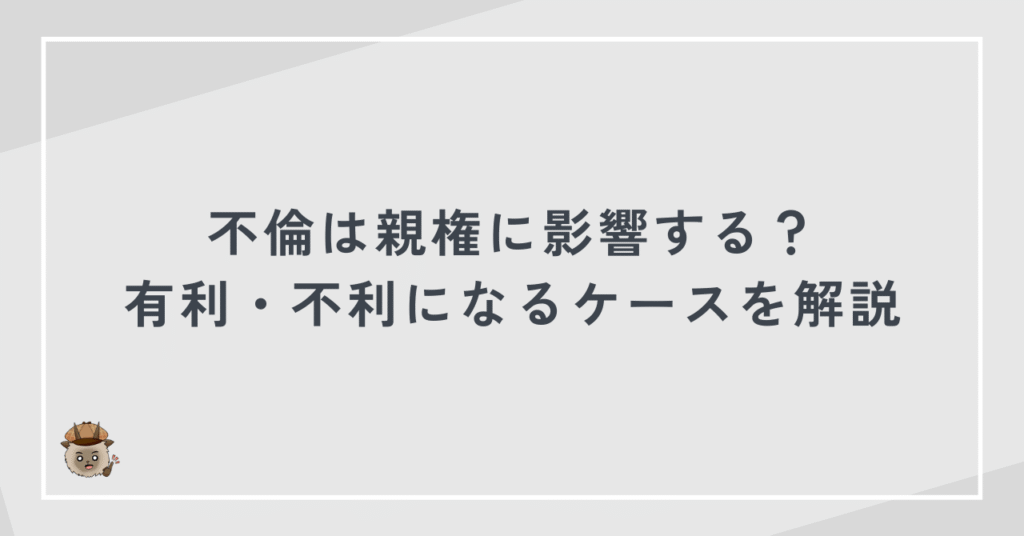 不倫が親権に影響するかどうかは、不倫が子どもの生活や養育環境にどのような影響を与えたかで判断されます。