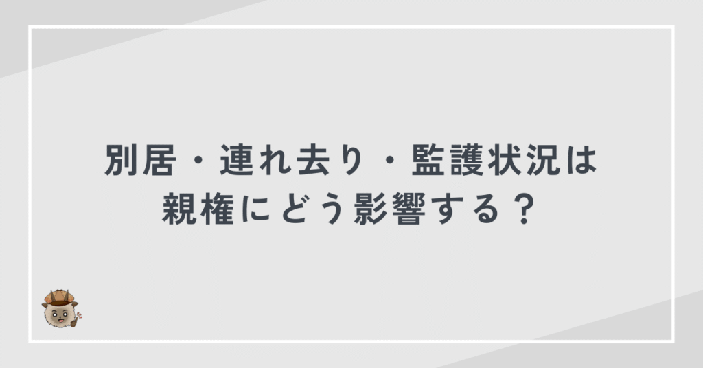 別居のタイミング、子どもの監護状況、日常の育児関与、証拠の積み重ね。