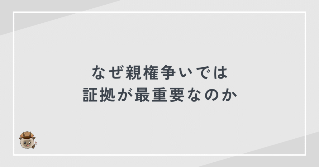親権争いでは、「正しい主張」よりも「証拠の有無」が結果を左右します。