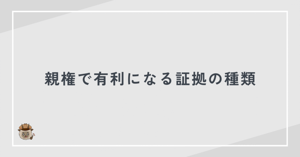 親権変更を目指す場合も、生活状況と養育環境を裏付ける証拠が不可欠になります。