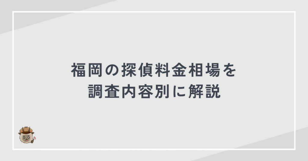 福岡の探偵料金相場を調査内容別に解説