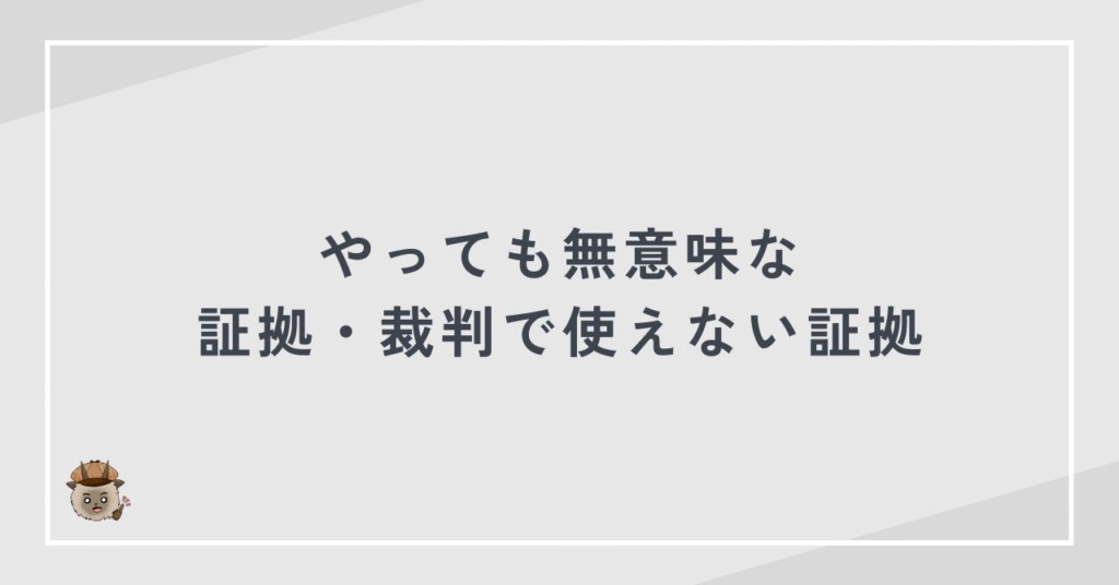 - 違法に取得した証拠は裁判で使えず、逆に訴えられる危険がある