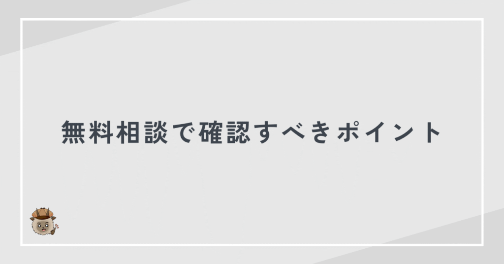 無料相談で必ず確認すべきポイントは次のとおりです。