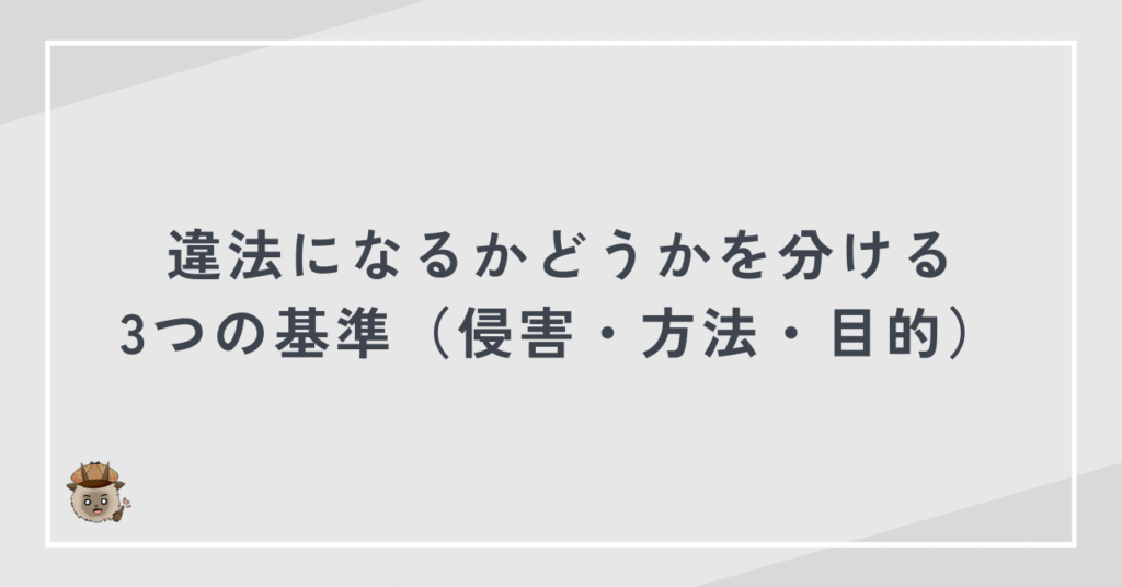 違法になるかどうかを分ける3つの基準(侵害・方法・目的)