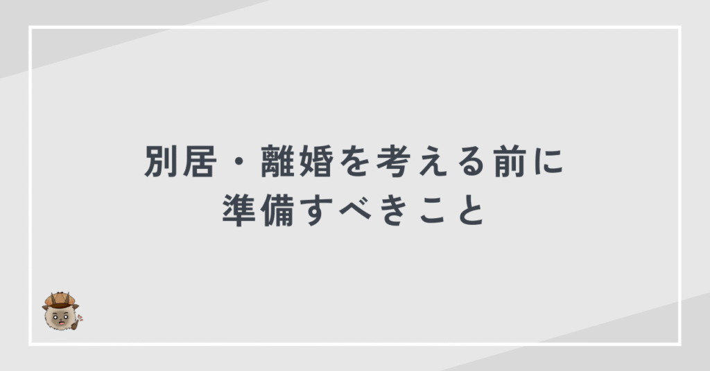 別居や離婚を決断する前に、必ず準備を整える必要があります。