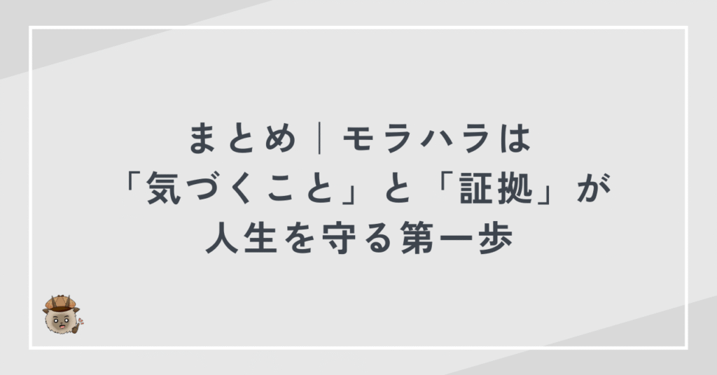 まとめ|モラハラは「気づくこと」と「証拠」が人生を守る第一歩