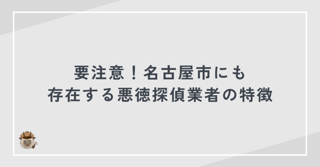次の章では、名古屋市にも実在する悪徳探偵業者の特徴を詳しく解説します。