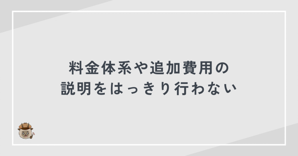 料金体系や追加費用の説明をはっきり行わない