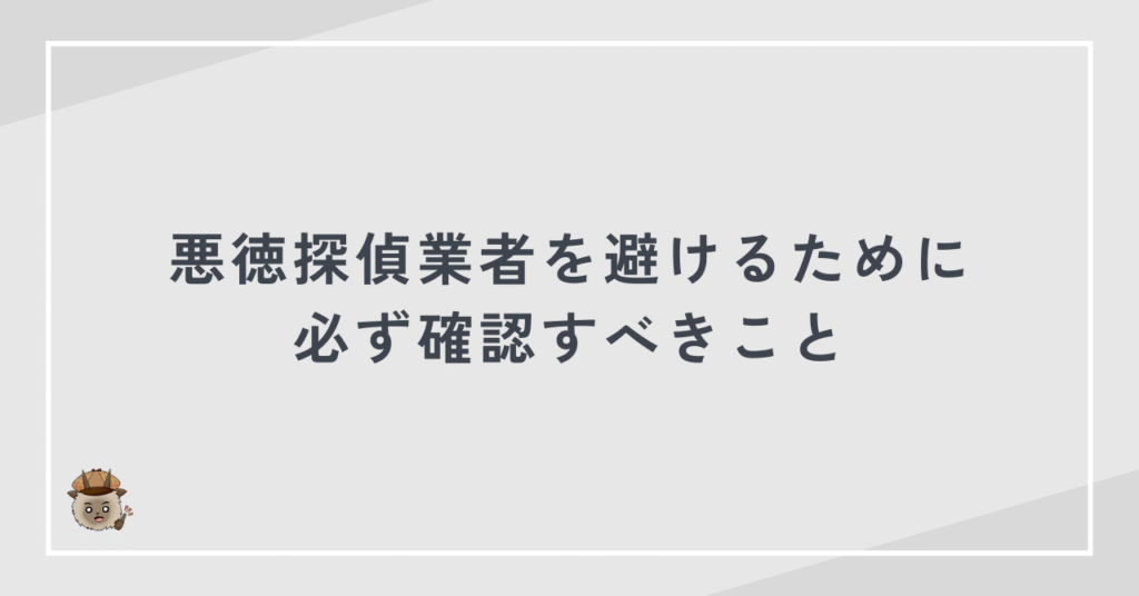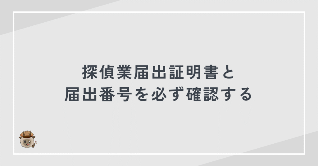 悪徳業者を避けるためには、探偵業届出証明書の有無、事務所の所在地、運営会社の情報を必ず確認する必要があります。