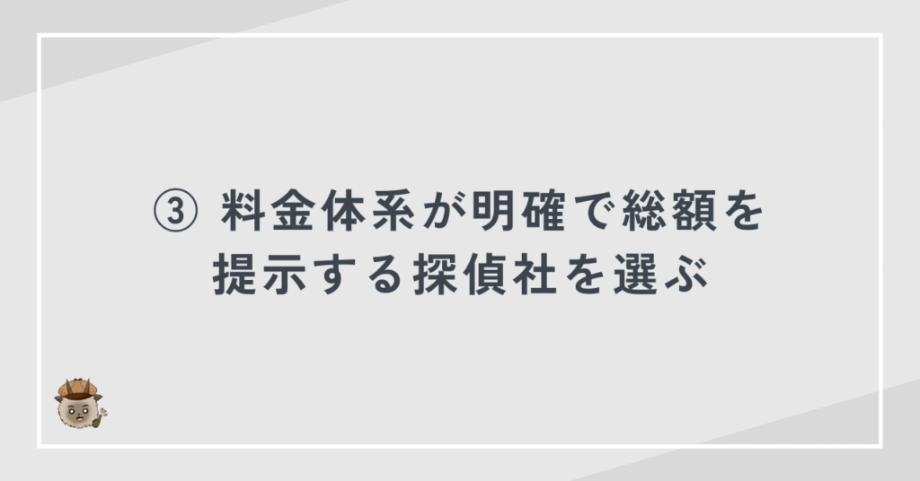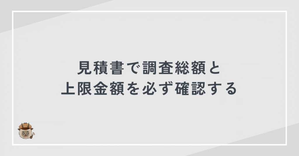 調査開始前に正確な総額を把握できないと、後から高額な追加料金を請求されるリスクが高まります。