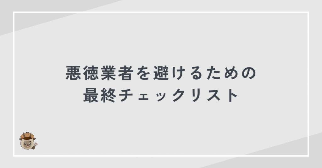 危険な業者の特徴を知ることで、失敗のリスクを大きく減らすことができます。