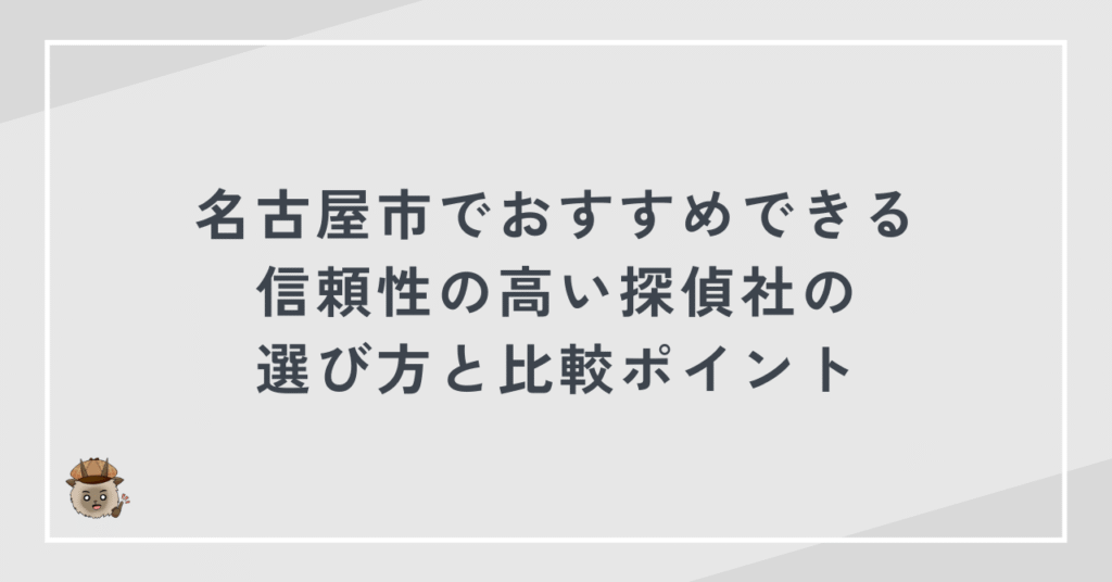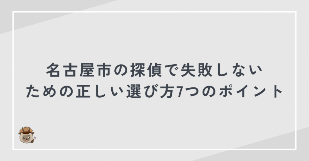 この記事を読めば、名古屋市で安心して依頼できる探偵社を自分で見極められるようになります。