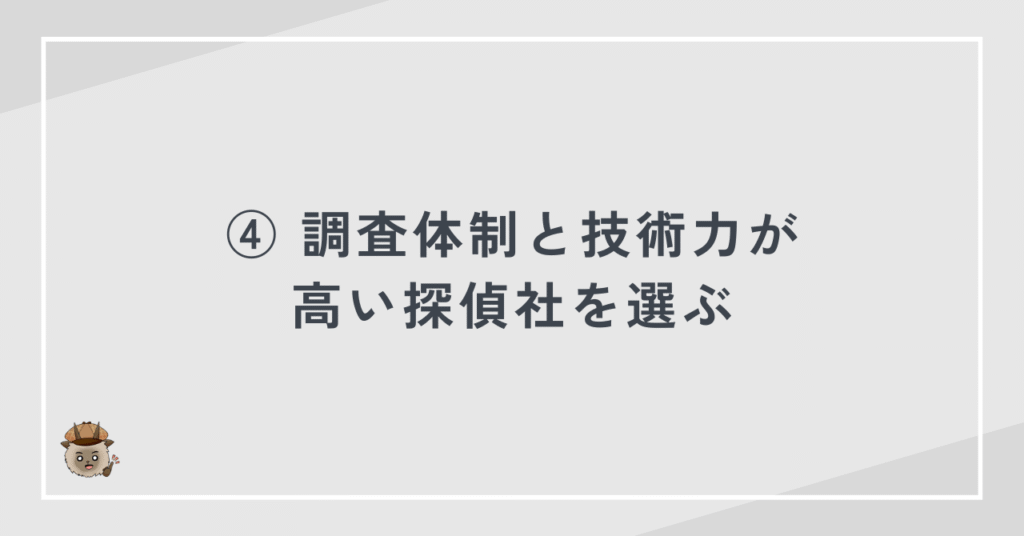 発覚率と過去のトラブル事例について説明できる探偵社を選ぶことが重要です。